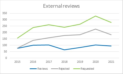 The members of Cemcat are increasingly in demand on the part of the editors of international scientific journals. In 2021, as many as 278 requests for reviews were received. Since 2015, this figure has increased by more than 78,2%.